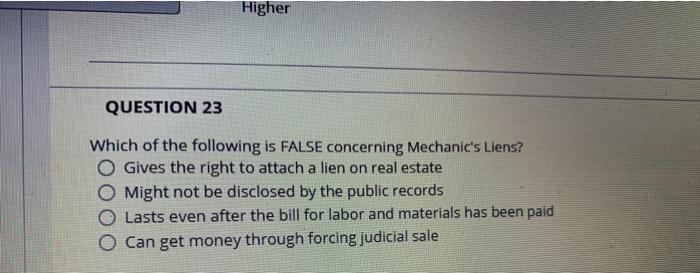 Which of the Following Is False Concerning Mechanic's Liens