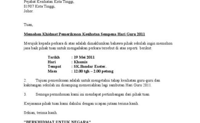 Contoh Surat Rasmi Kepada Pekerja Untuk Membuat Pemeriksaan